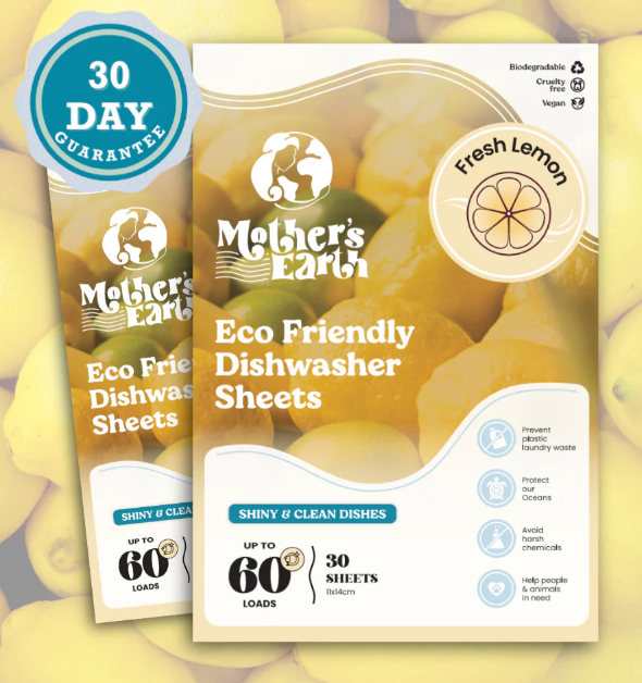 Mothers Earth Dishwasher sheets are entirely microplastic and chemical free which protects your family and the environment.